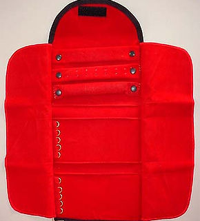 Mostruário grande com três bananas para brinco, três bananas para anel e vinte argolas para corrente.